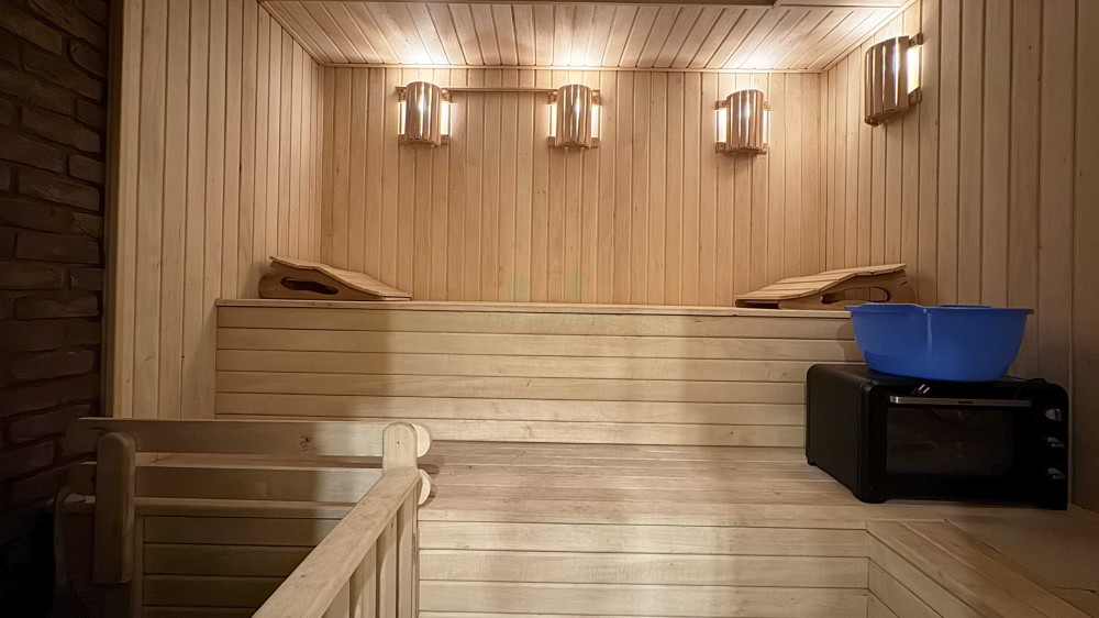 1 поверх – передпокій, туалет, душ, котельня, сауна та кухня;