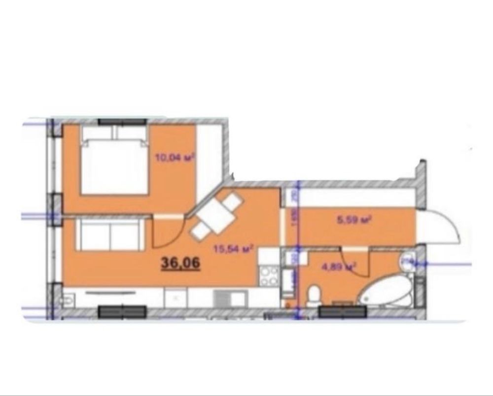 • Загальна площа 36 м2