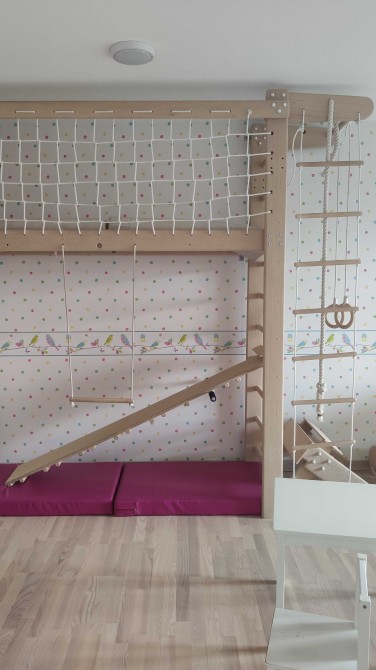 Дитяча кімната має спортивну стінку, розрахована на 2 і більше дітей.