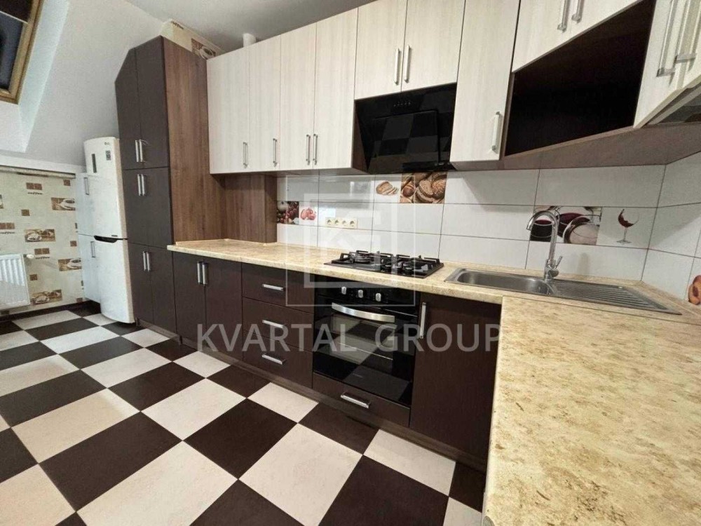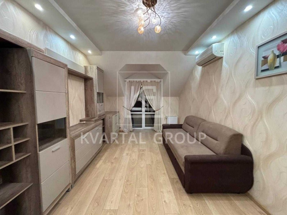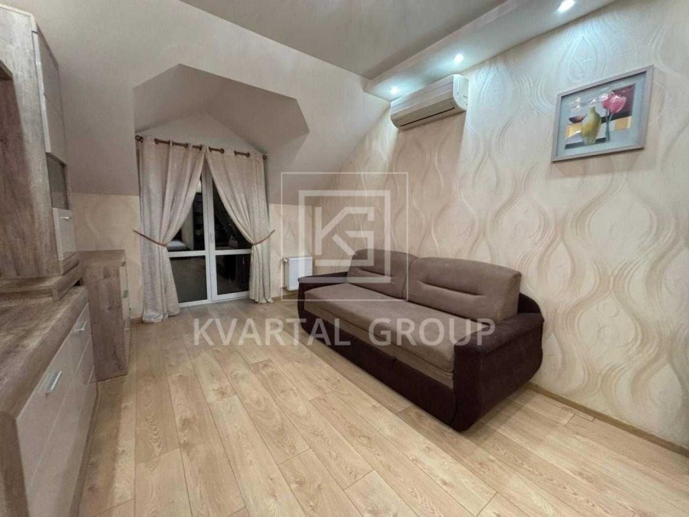 Оренда просторої однокімнатної квартири в сучасному житловому комплексі "Полтавський двір". Виконаний сучасний ремонт, в кімнаті є два спальних місця та балкон. В кухні вбудована кухонна мебель, облаштована зручна обідня зона з диваном, встановлена газова варильна поверхня, духова шафа, витяжка та посудомийна машина, також є пральна машина та містка шафа купе для одягу. Додатково в квартирі є мансардний поверх, де є безліч місця для зберігання особистих речей.