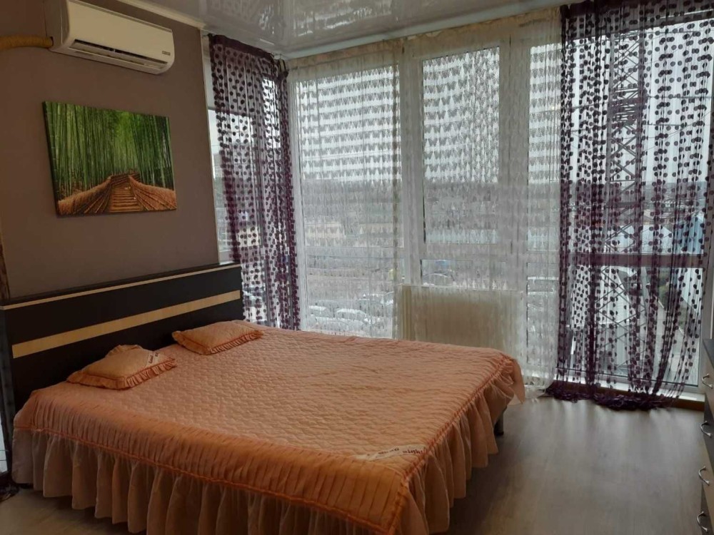3кімнатна квартира, перебудована у 2кімнатну. Кухня-студія має телевізор, кондіціонер, диван, софу, посудомийну машину, пральну машину, витяжку, духову піч та вихід на балкон. Вікна кухні виходять у двір. Вікна спальні на проспект Миру. В спальні також є кондіціонер та телевізор. Ванна велика, має вуглову ванну та бойлер. Підійде для сімї з 3 людей. Поряд знаходиться бібліотека, магазин, море, кафе, банк та парк. Здається з проживанням і влітку також, без виселення. Деталі за телефоном.