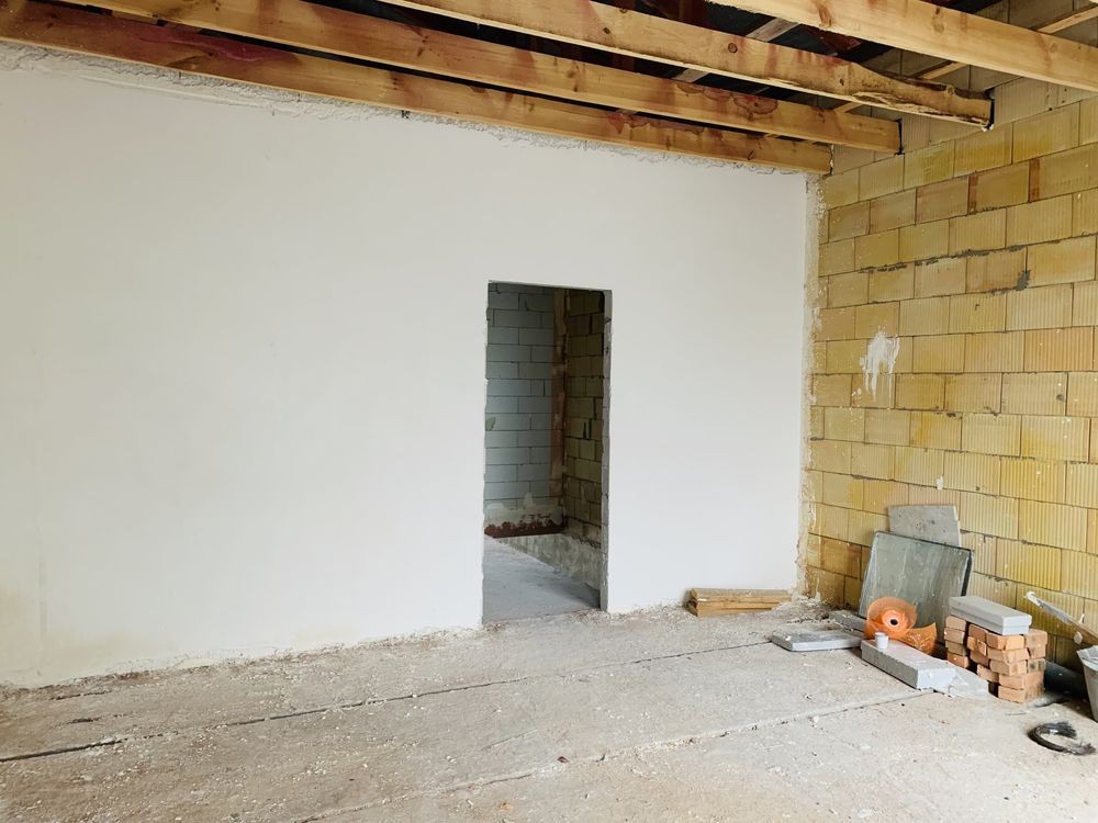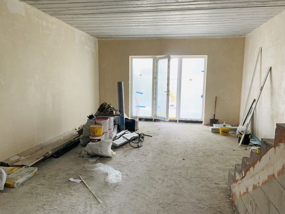 В будинку чистова штукатурка стін, стяжка підлоги, тепла підлога на першому поверсі.