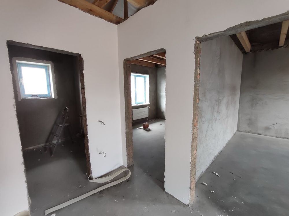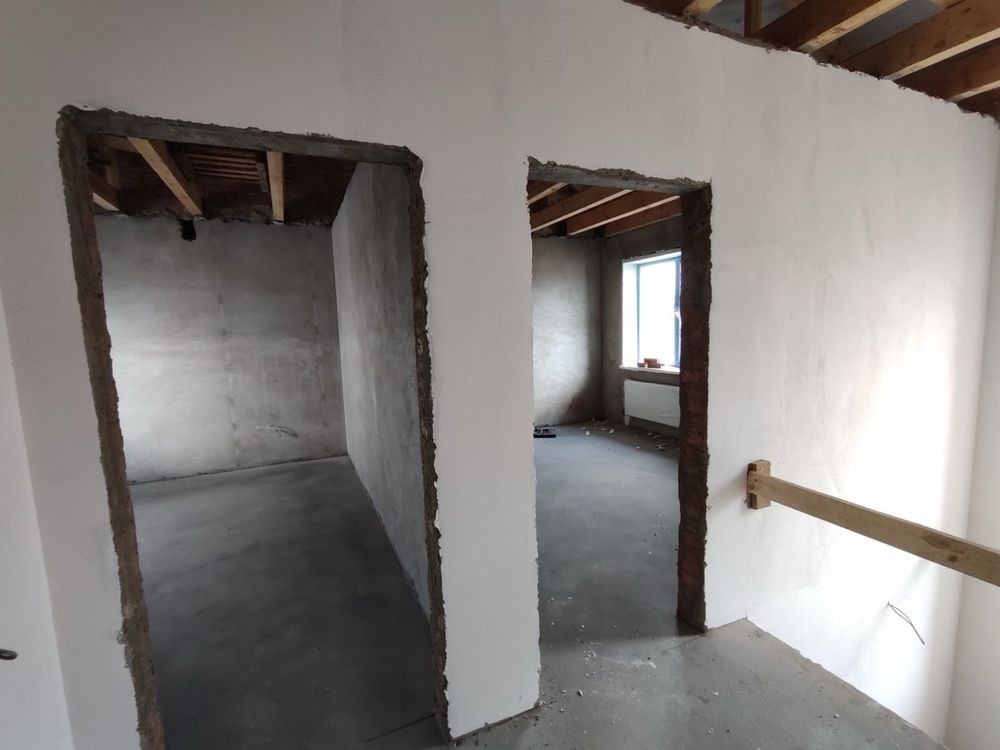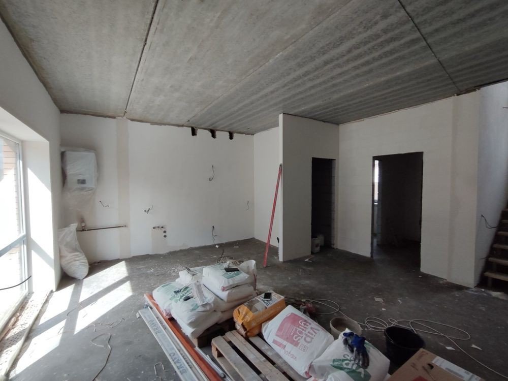 Наразі дуплекс в чистовому варіанті, розведена електропроводка, сантехнічні виводи . Накриті великі тераси . Є місце посадити дерева.