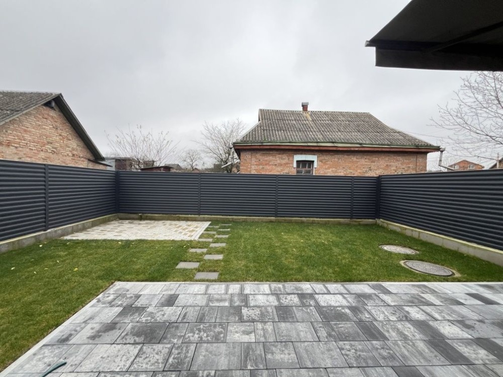 Дуплекс розміщено на 3.5 сотих землі, паркан з відкатними воротами, тротуарна плитка та декоративне озеленення подвір'я
