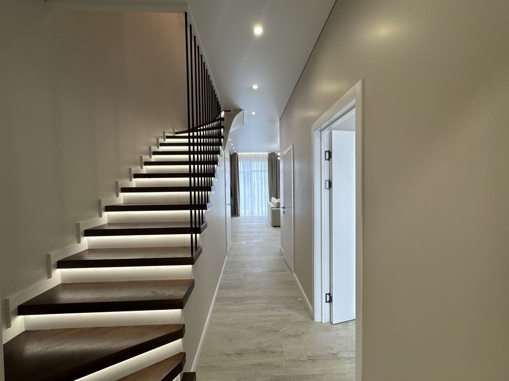 - Планування: простора кухня-вітальня , з виходом на терасу , 4 окремих кімнати , балкон , декілька санвузлів та підсобне приміщення
