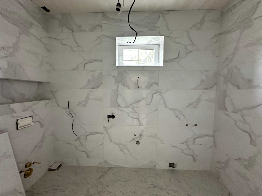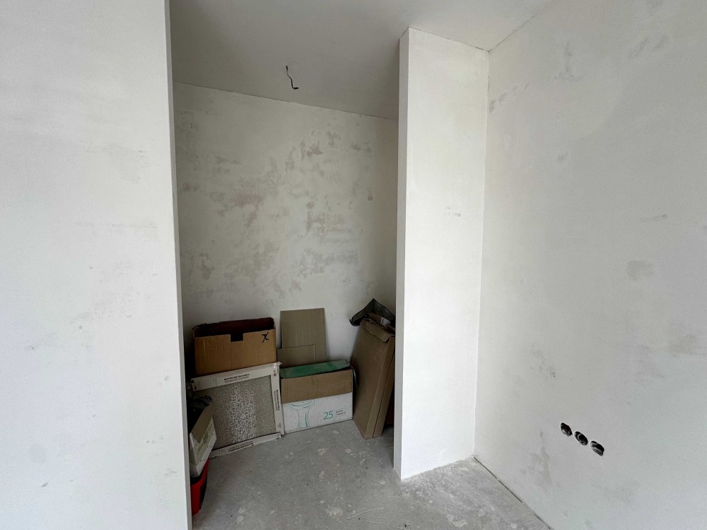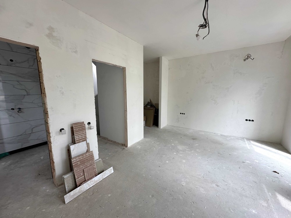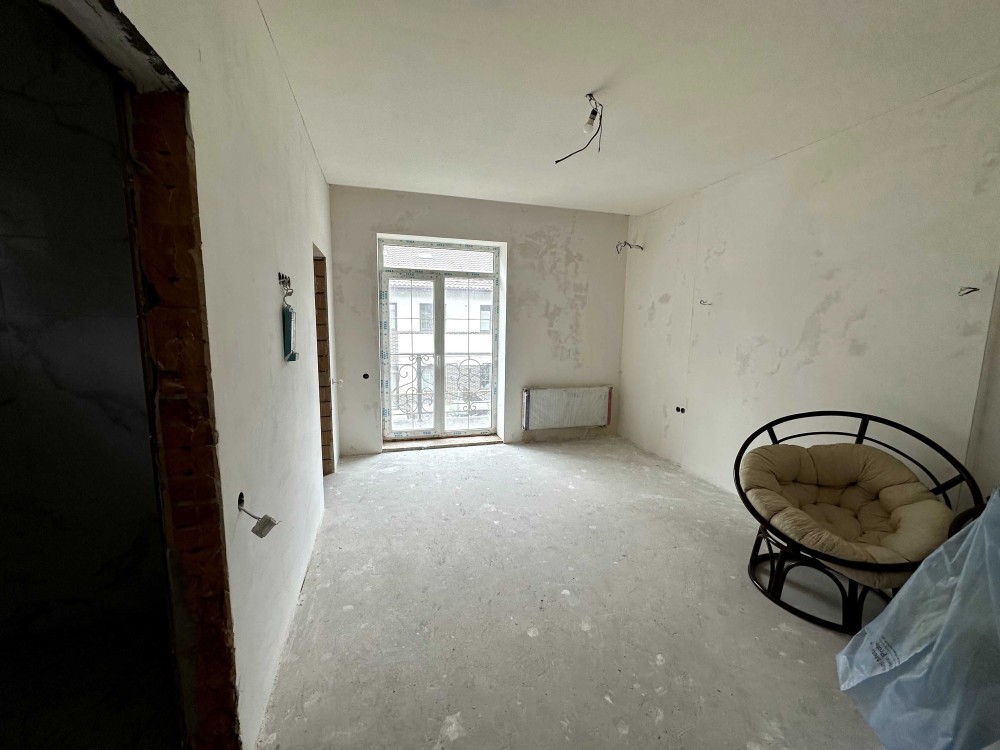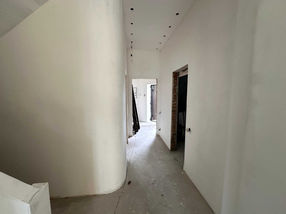 Просторий дуплекс 170 м² на 4 сотках уже з частковим ремонтом і технікою. Тепла підлога, розведена електрика і сантехніка, стіни поштукатурені, в санвузлах — плитка й душові. Є утеплення, шумоізоляція, сигналізація, підняті стелі. Будинок на три поверхи: на першому — кухня-вітальня з виходом у двір, технічна кімната та санвузол; на другому — дві спальні з окремими гардеробами і ванними; на третьому — гостьова, санвузол, пральня і лаунж.