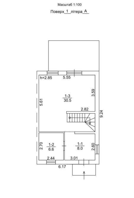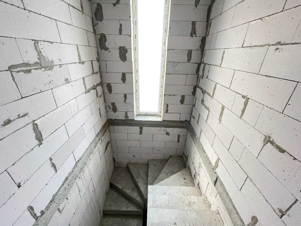Перший рівень включає велику кухню вітальню і санвузол, на другому рівні розташовані 3 спальні і санвузол. Перекриття залізобетонне збірне, східці бетонні литі.