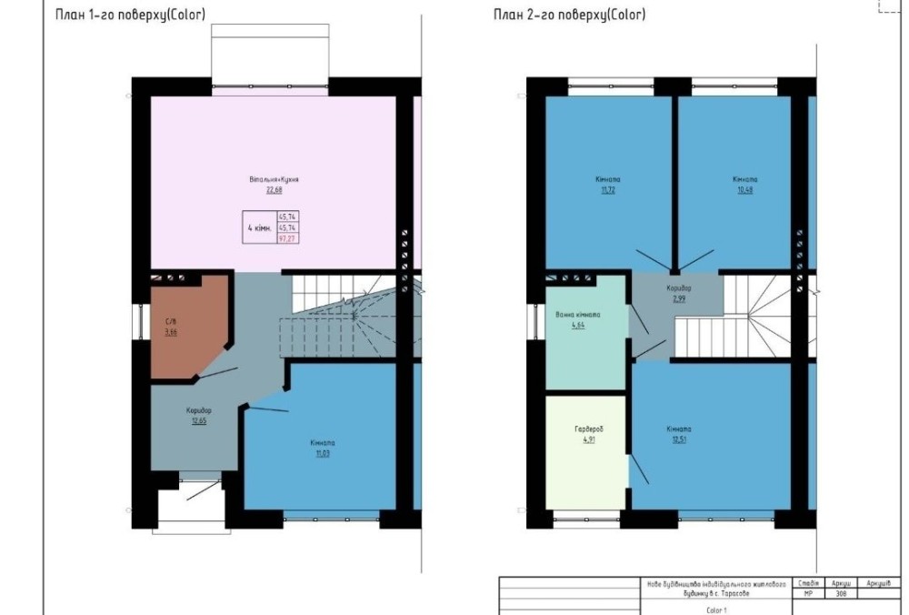 2 поверх : 3 спальні, санвузол, гардеробна. Головна спальня зі своєю гардеробною.