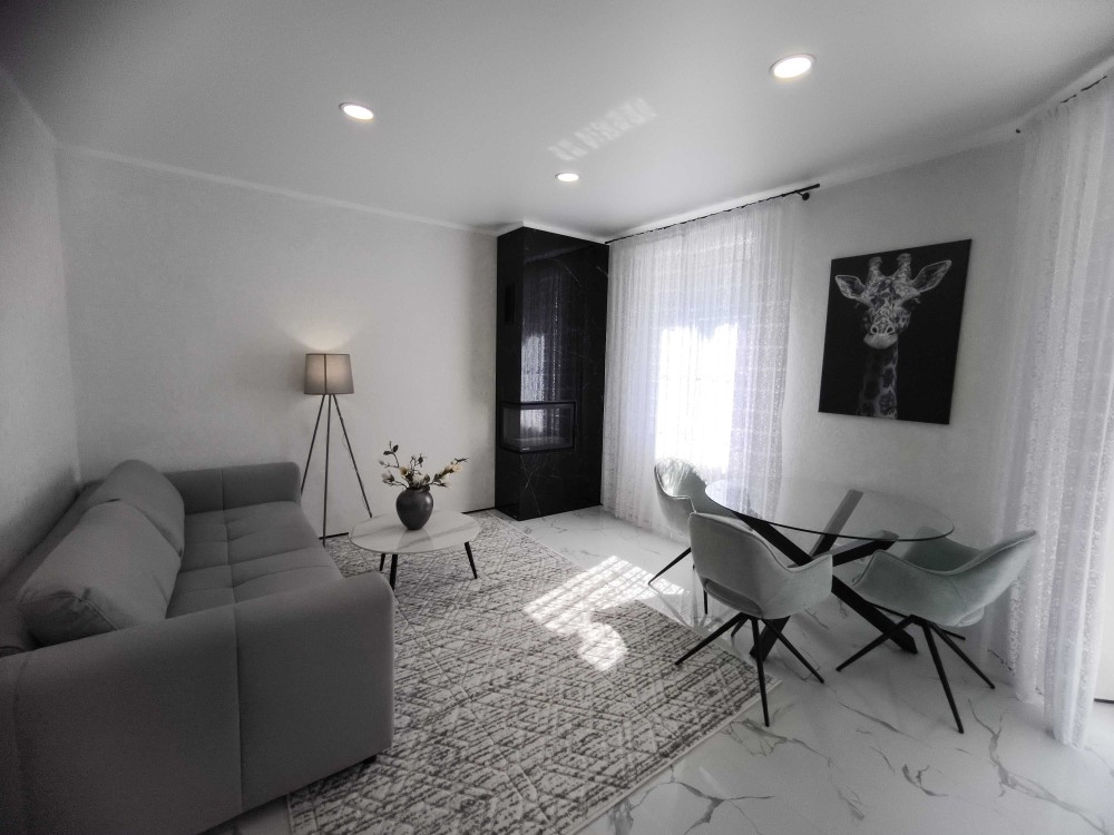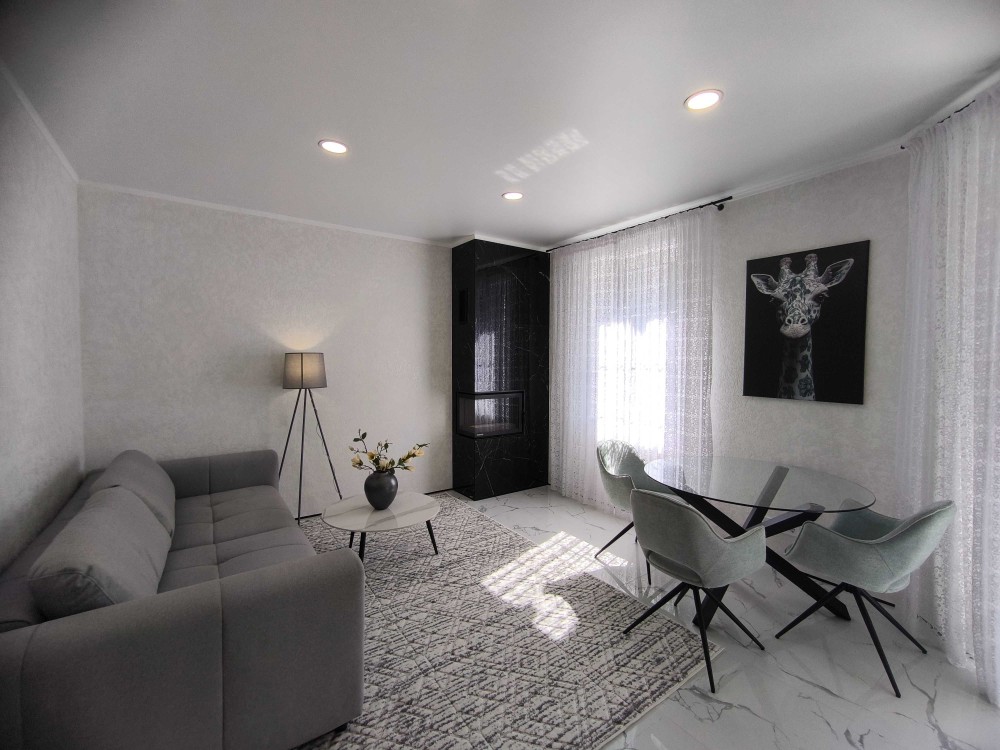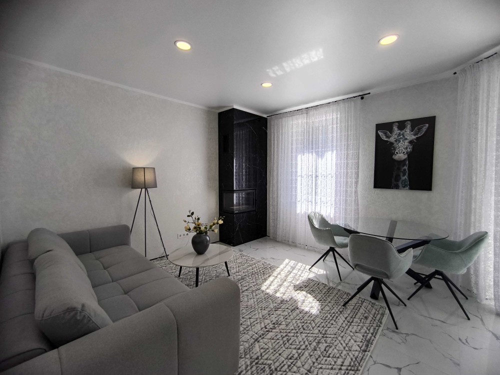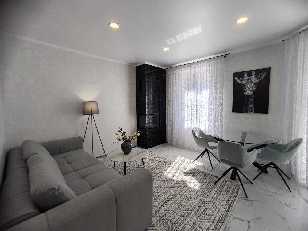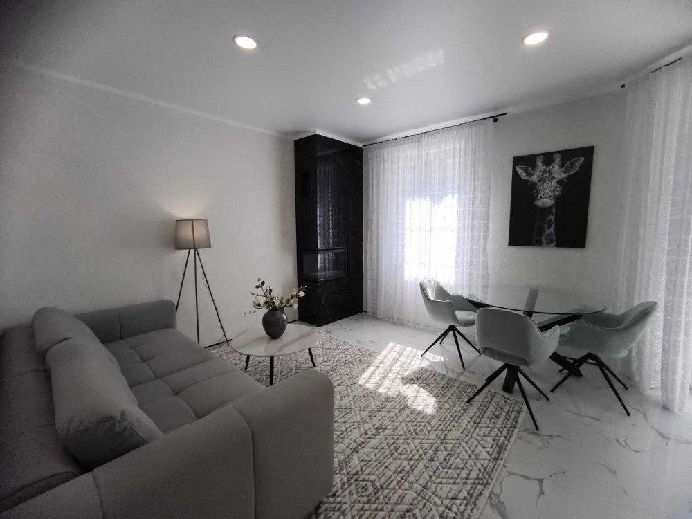 Будинок з дизайнерським ремонтом, меблями та технікою. Навколо дорога котеджна забудова. Ніхто не жив. Усі комунікації підключені.