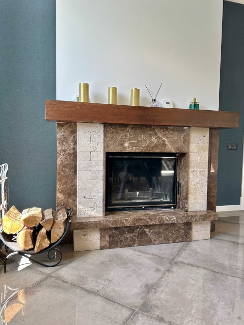 • простора кухня-вітальня 30,6 м² з дров’яним каміном