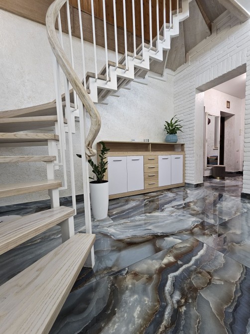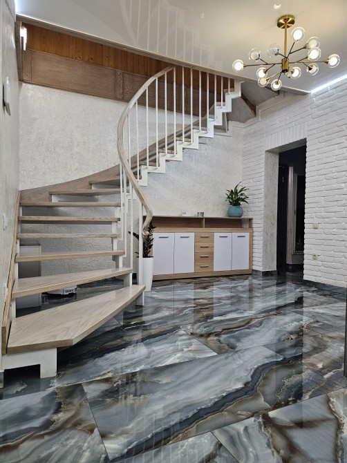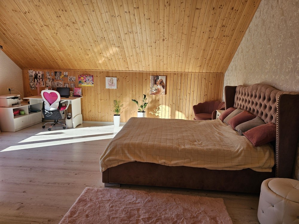 На другому поверсі три спальні , (одна з великою гардеробною), санвузол .Великі вікна, висока стеля.На першому поверсі скрізь тепла підлога!