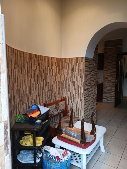 Шукаєте спокійне місце неподалік від природи? Пропонуємо пів будинку на вулиці Шевченко, розташований на другій лінії від річки (р-н літака). Будинок цегляний, загальна площа 53 м²: три кімнати, кухня, санвузол та коридор. Підключені газ та електроенергія, вода заведена з колодязя (насосна станція), є вигрібна яма. Опалення — дві діючі печі (груби). Гаряче водопостачання забезпечується бойлером. У будинку наявний великий сухий погріб зі зручним спуском. Стан будинку добрий, але потрібен внутрішній ремонт, проте одна з кімнат повністю придатна для проживання вже зараз. Земельна ділянка — 5 соток, приватизована. Передбачена можливість збільшення земельної ділянки ще на 1,8 сотки. На території розташований цегляний гараж з оглядовою ямою, передбачене місце для паркування автомобіля, з земельної ділянки є вихід до річки. Ціна: 29 000 у.о. Торг можливий.