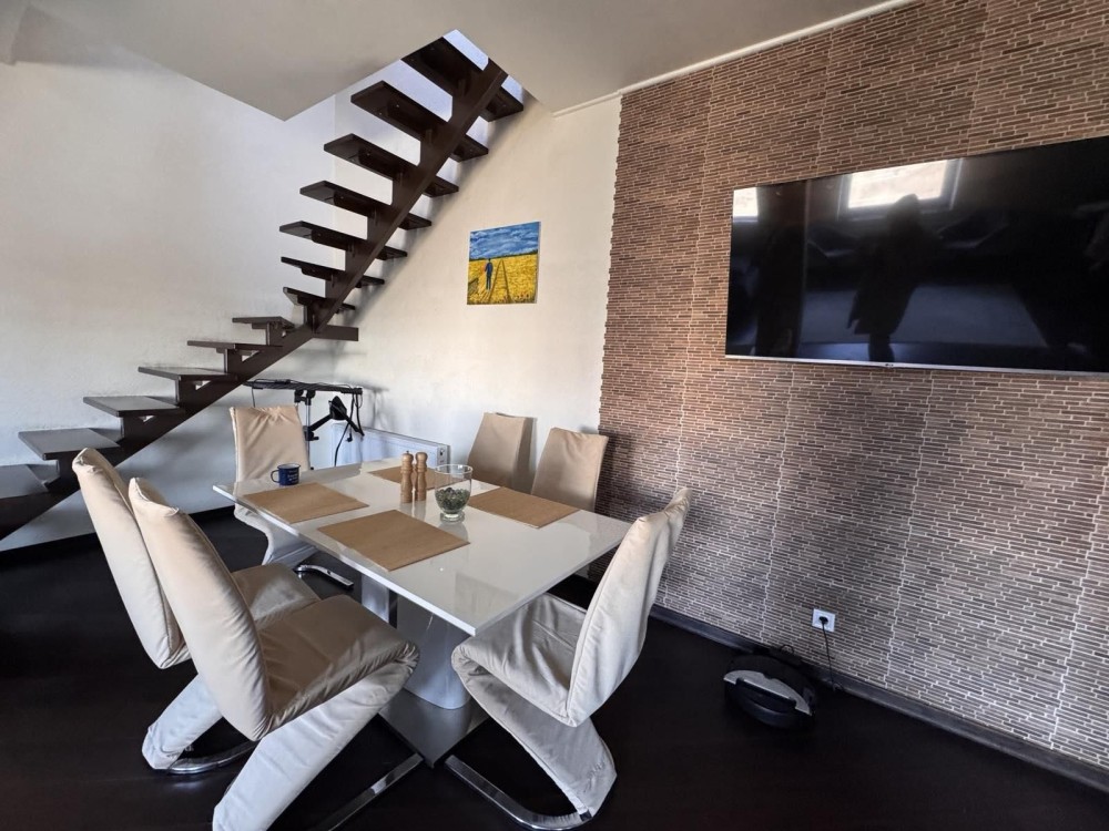 Продаж двохрівневої квартири в будинку закритого типу! Будинок цегляний з газом, своєю скважиною, своїм двором і парковкою! Всього на 8 квартир! Квартира простора, з усіма зручностями, двома санвузлами, облаштована меблями і технікою! До Нового району 5хв!