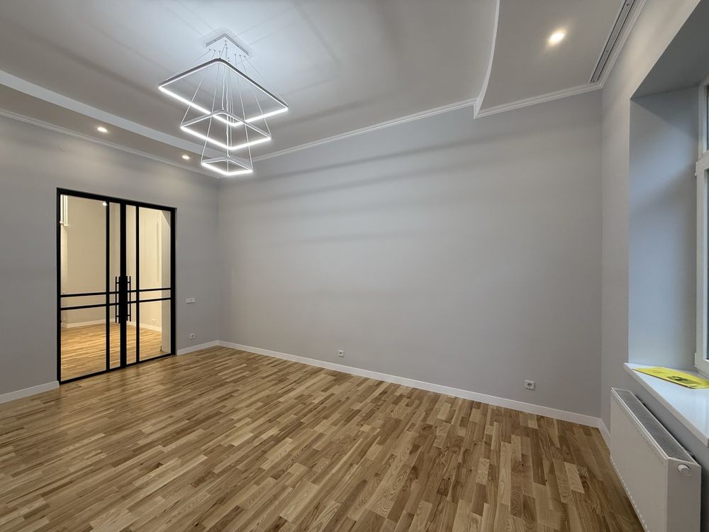 Двокімнатна квартира, із новим ремонтом, індивідуальне опалення, з фасадними вікнами та великим внутрішнім двориком.