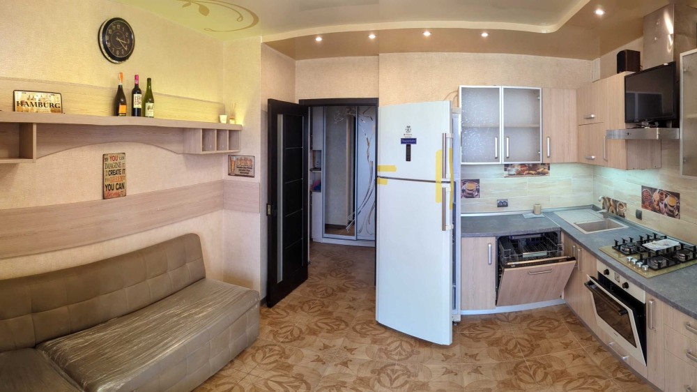 Стан після клінінгової служби. Комплектація як на фото. Відеодомофон, відеглазок, пультова охорона, оптичний інтернет, інверторні стиралка та кондиціонер, холодильник, додаткові батареї на лоджії та в кабінеті, м'який розкладний кухонний куточок.