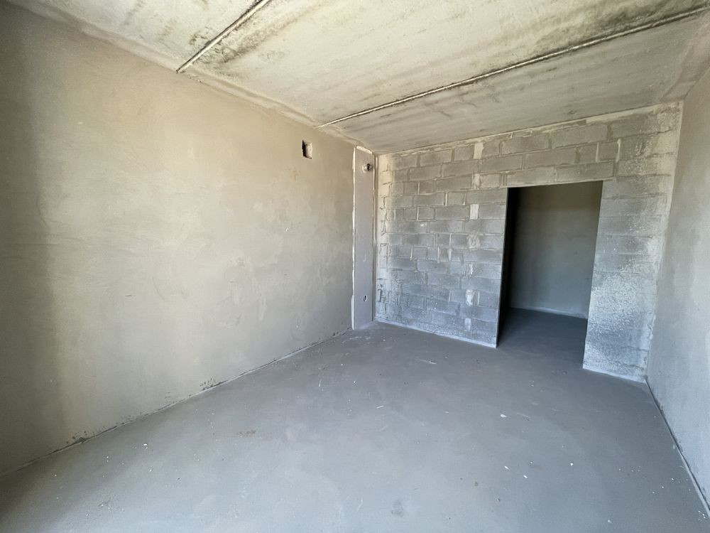 В квартирі виконано чорнову штукатурку і лазерну стяжку підлоги.