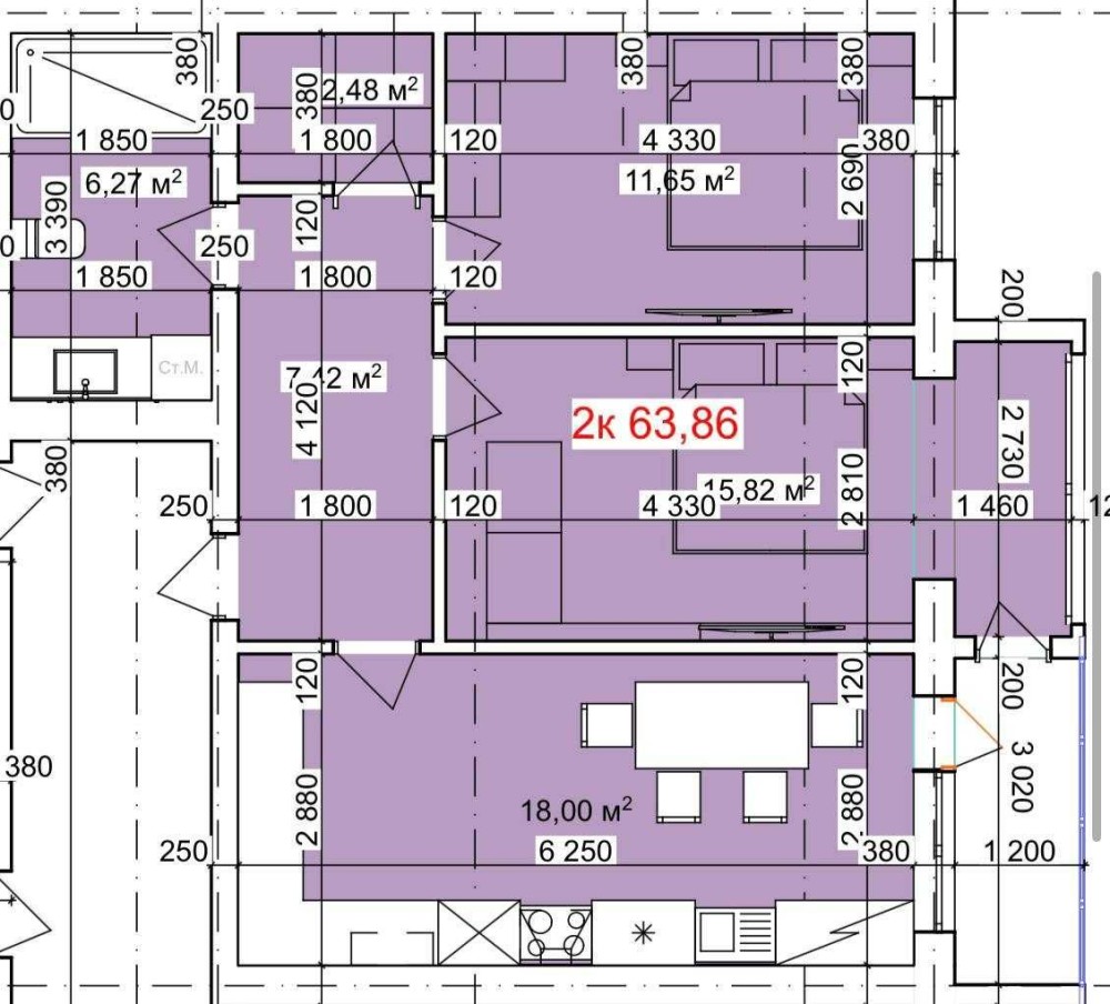 • Загальна площа 63.86 м2