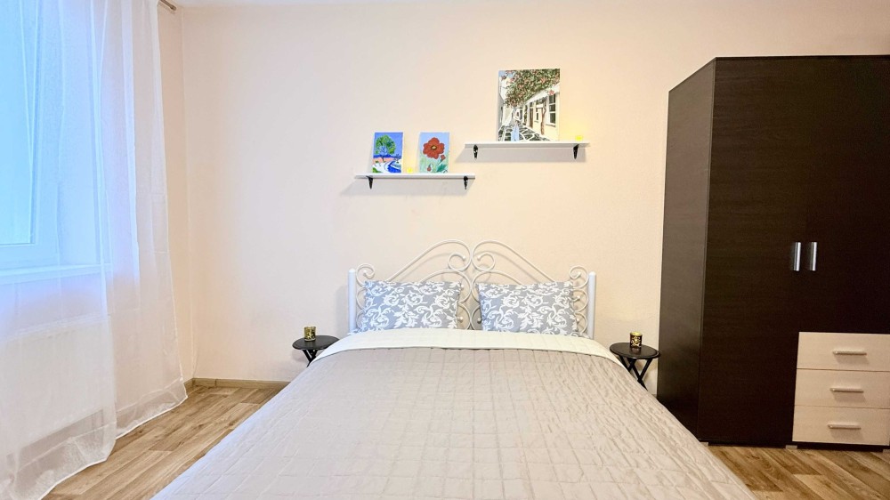 Современная квартира на 2-ом этаже в самом центре Житомира сдается посуточно и понедельно. Свежий современный ремонт, есть вся мебель: двуспальная кровать, диван, кухонный стол, кухонный гарнитур и бытовая техника: телевизор, микроволновка, холодильник, плита, электрический чайник, утюг, фен, стиральная машина. Всегда свежее постельное белье и полотенца. Горячая вода круглосуточно. Безлимитный интернет wi-fi. Фото квартиры соответствуют действительности. Рядом с домом большая стоянка для автомобилей, супермаркет, магазины, аптеки, отделения банки. . Стоимость за сутки для пары от 670 до 900 грн. Цена зависит от спроса, дня недели, в выходные и праздничные дни дороже. Дополнительное спальное место плюс 150 гривен. Цена почасово от 450 гривен (за 2-3 часа в дневное время). . Предоставляю отчетные командировочные документы – налоговый фискальный чек с QR-кодом, счета и копии регистрационных документов ЧП. . На sms-сообщения отвечаю с большим опозданием. Лучше звоните