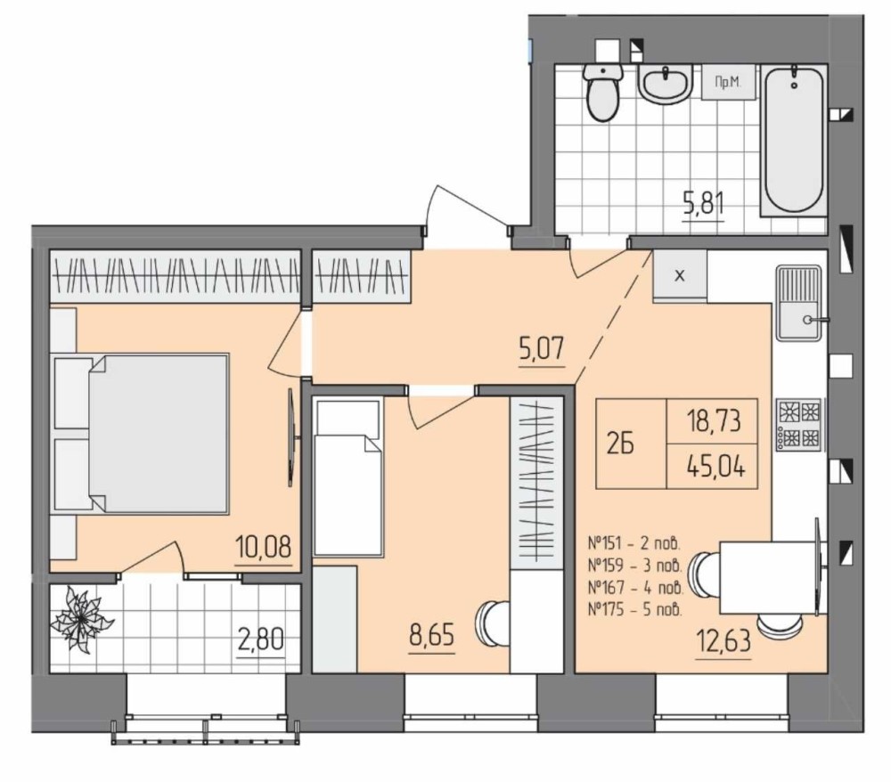 • Загальна площа 45 м2