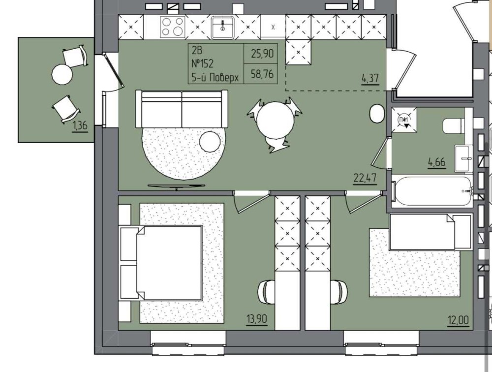 • Загальна площа 58.76 м2