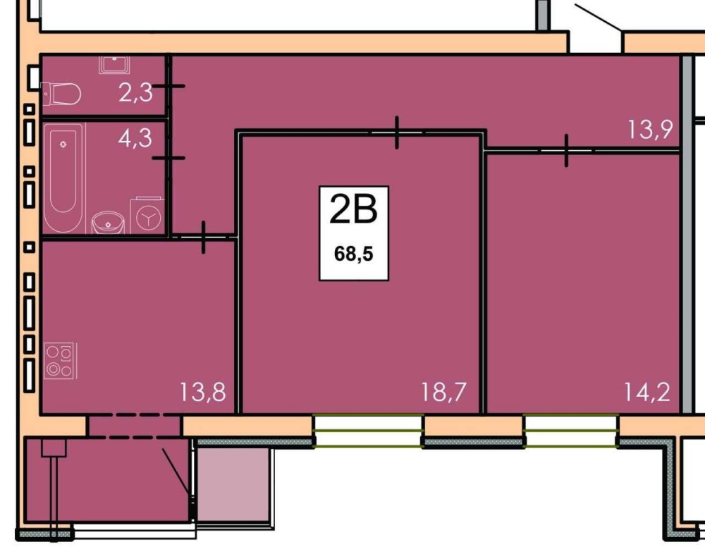 • Загальна площа 68 м2
