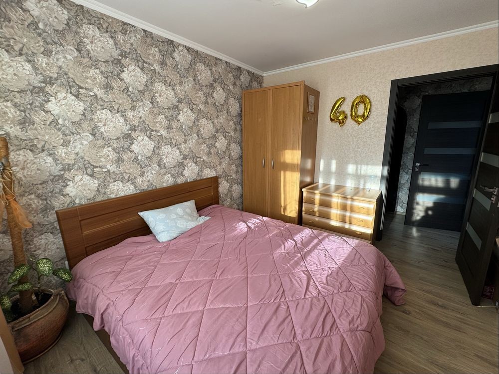 Дві окремі спальні та кухня вітальня, гардеробна, суміжний санвузол, засклений балкон. Квартира з ремонтом, завжди є гаряча вода від газової колонки(працює без світла), є всі необхідні меблі, з техніки є: холодильник, пралка, пилосос, праска, відпарювач. Є посуд та постіль. На все лічильникі. Вільна.