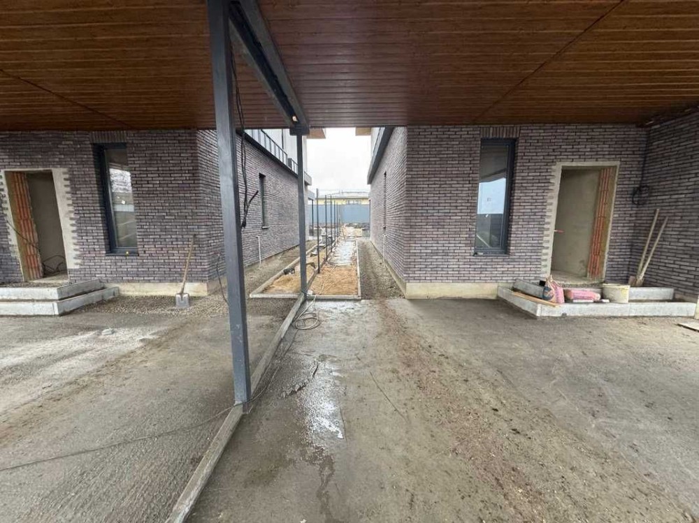 Комплектація: Навіс на 2 авто, навіс на терасі, розведення електрики, цементно-піщана штукатурка.