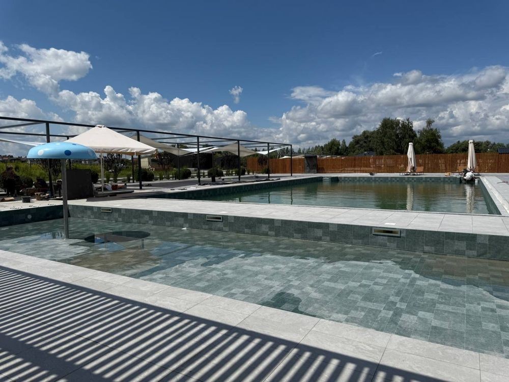 В котеджному містечку вже діюча інфраструктура: ресторан, бар, 2 басейни із підігрівом, озера для риболовлі.