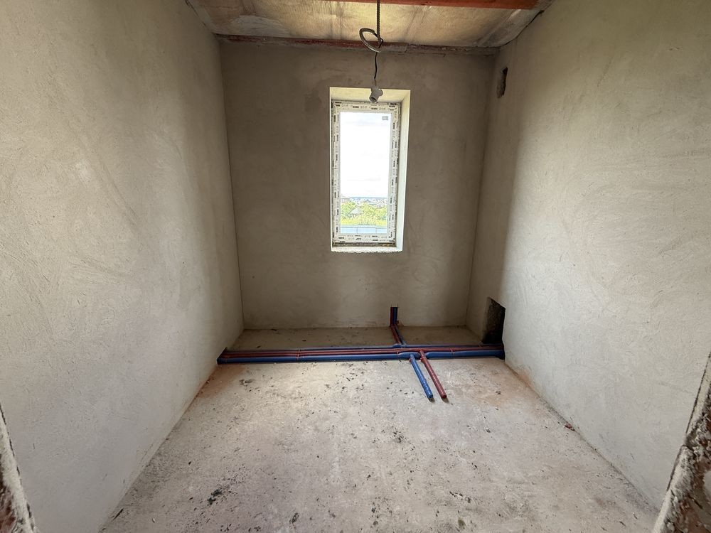 Збудований із червоної цегли та утеплений мінеральною ватою. Внутрішні стіни вже поштукатурені. Можна одразу розпочинати ремонт.