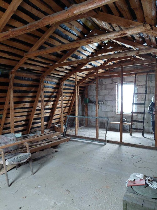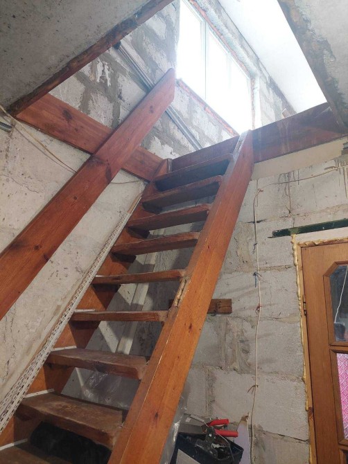 Будинок побудований з піноблоку, перекриття -залізобетонні плити,покрівля- металочерепиця, вікна- дерево, ПВХ, сходи- дерев”яні.