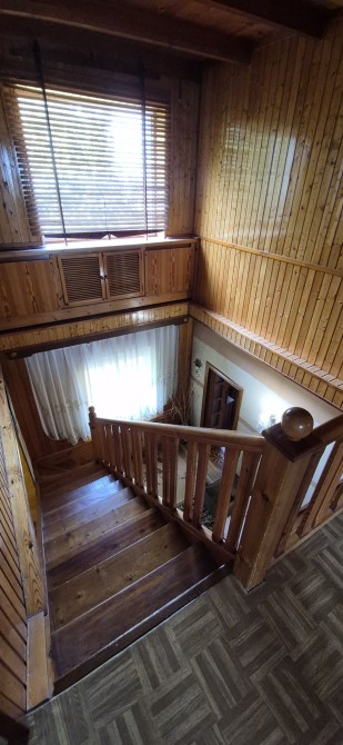 1-й поверх (стелі 3 м.): 2 кімнати; кухня – 13,6 кв.м, передпокій, хол -33кв.м (6 м. стелі); з/в (ванна/туалет). паркет. 2-й поверх: 3 кімнати, санвузол .