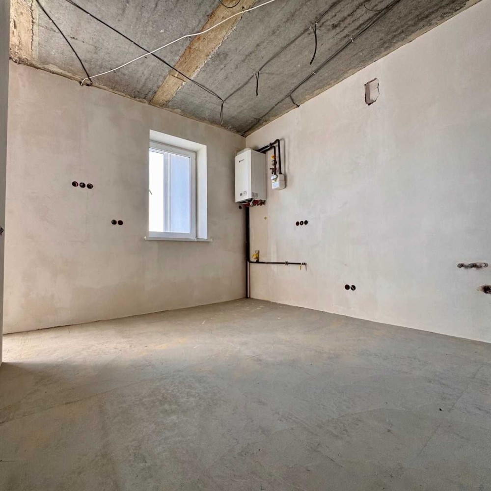Зроблені чорнові роботи, залита чистова стяжка, теплі підлоги, електро розводка, двоконтурний котел.