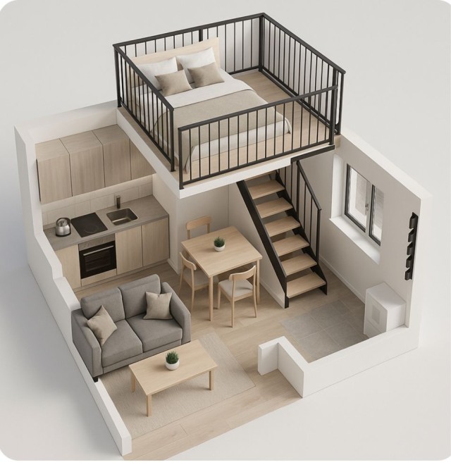 Дворівнева квартира 27 м² у сучасному комплексі: