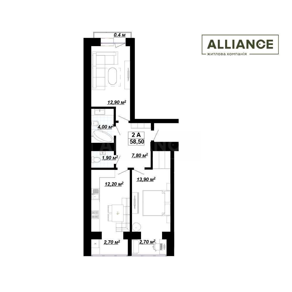 • Загальна площа 58.5 м2