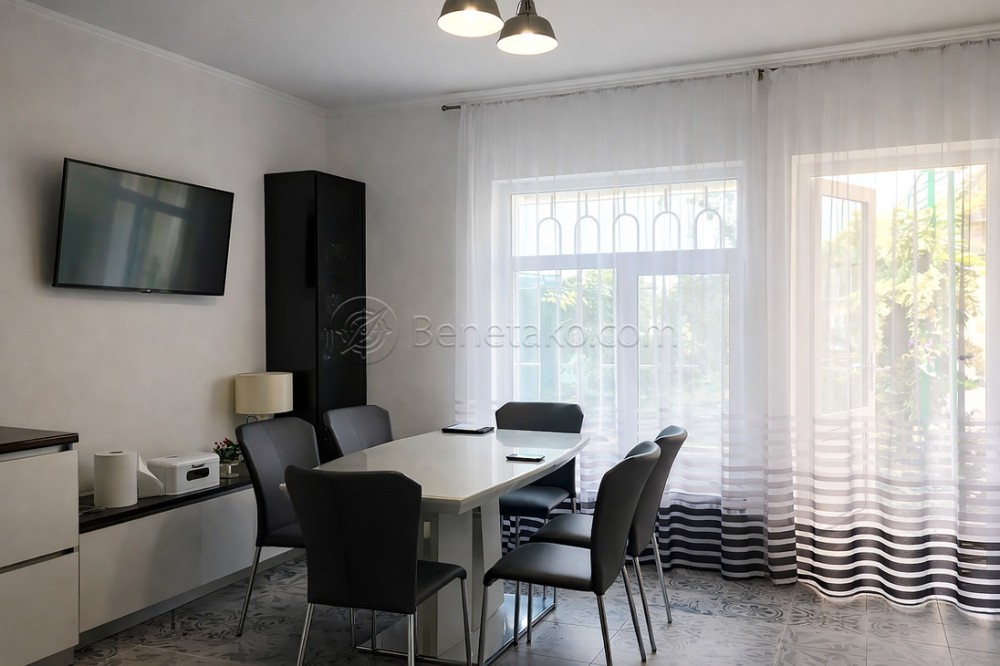 Код: 2249. (В летние месяцы цена немного повышается). Двухкомнатный дом в закрытом кооперативе на ул. Костанди. Евроремонт, общая площадь 100 кв. м., участок 4 сотки. Планировка: гостиная, спальня, большая кухня.В доме есть вся необходимая мебель и бытовая техника: холодильник, посудомоечная машина, варочная панель, утюг, электрочайник, плита, стиральная машина, пылесос, духовой шкаф, микроволновая печь, скоростной Wi-Fi интернет, телевизор, индивидуальное газовое отопление. Автономность при блэкауте: работает интернет, подключено резервное питание, работает отопление, работает водопоснабжение. Очень тихое место и приятные соседи, к морю пешком 10 минут. Своя территория с мангалом, беседкой, и два гостевых дома. В основном доме везде установлены теплые полы. Возможно проживание с животными. Аренда от 6-ти месяцев и более. Стоимость может варьироваться в зависимости от срока аренды. Перед просмотром уточните наличие и важные для вас детали по VIBER, WHATSAPP или TELEGRAM, указав «КОД» из объявления. КОМИССИЯ ЗА УСЛУГИ РИЭЛТОРА - 50% от месячной аренды (разовая оплата при оформлении договора).