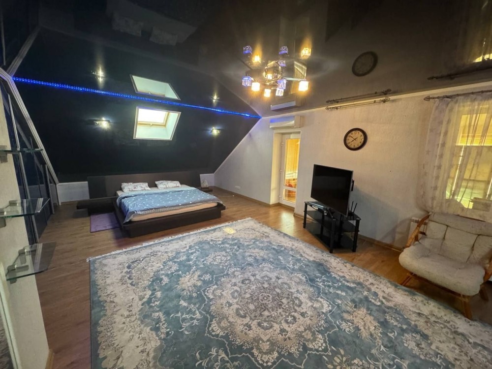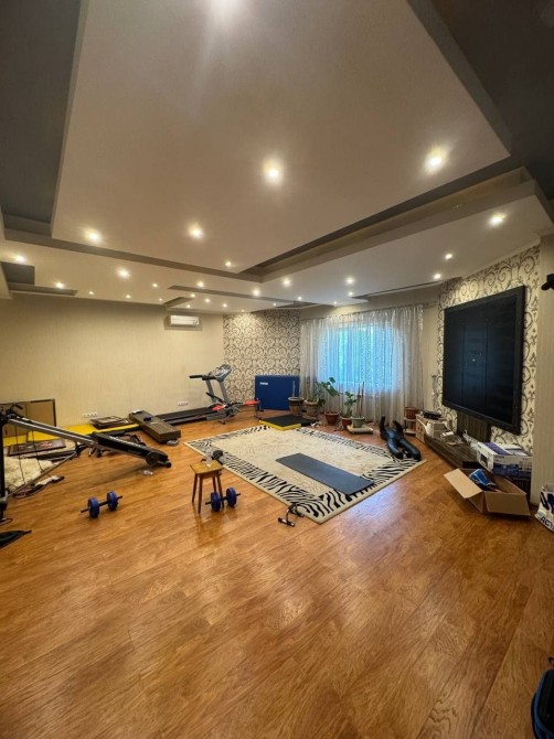 В большом доме первый этаж с огромной кухней и встроенной бытовой техникой большая гостиная + спортзал + санузел с большой ванной комнатой + огромная спальня