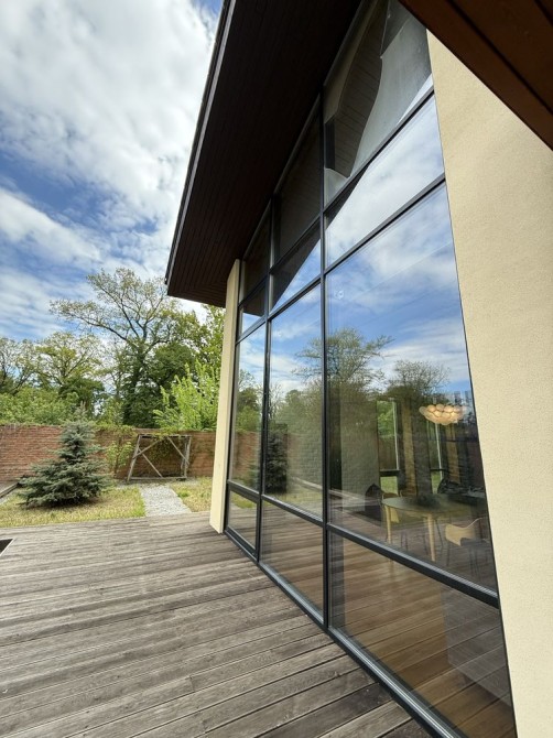 Будинок розташований в районі котеджної забудови. Тут дуже світло, чому сприяє панорамне скління, тут дуже хочеться залишитися і розставити меблі і розкласти свої речі)))