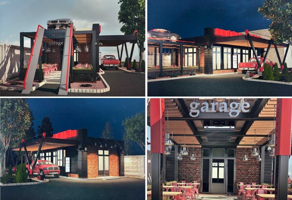 Будівля проєктувалась як кав’ярня «Garage» з вікном видачі і великою залою для відвідувачів.
