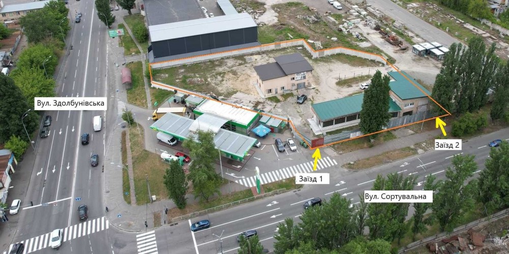 Пропонується в оренду фасадна будівля з ділянкою у стратегічно вигідному місці — на жвавому перехресті вул. Здолбунівської 3 та Сортувальної, з високим автомобільним та пішохідним трафіком.