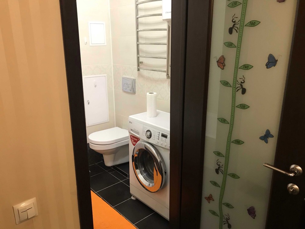 Квартира мебльована, має холодильник, духовку, варочну поверхню, витяжку, кондиціонер, мікрохвильовку, телевізор, бойлер, пральну машину, 5-ти ступеневий фільтр води осмос. Встановлений лічильник тепла, а електро лічильник змінений на день/ніч.