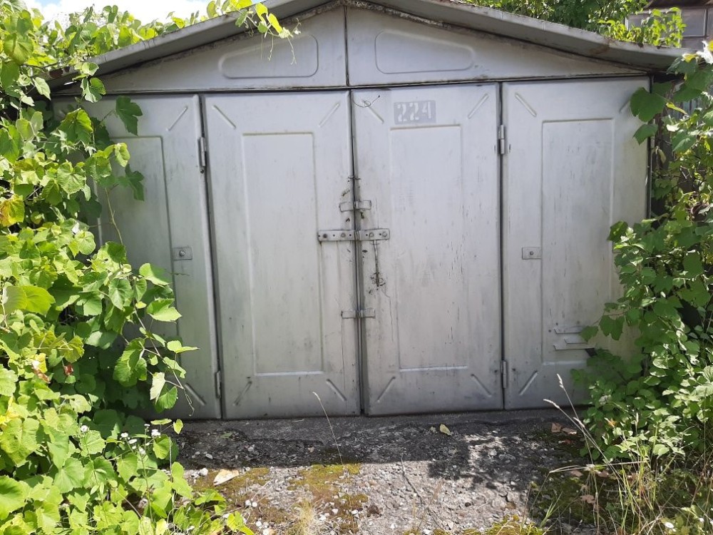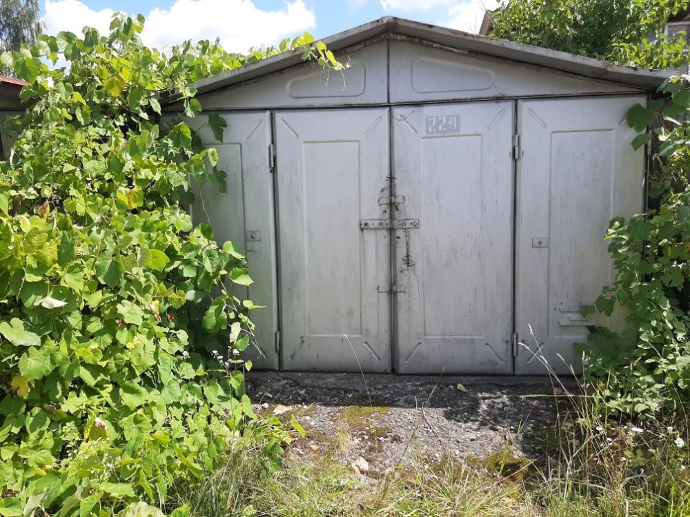 Гараж металевий, утеплений. Для легкового автомобіля. Знаходиться в Піщаному кар'єрі. Другий заїзд від прохідної. Ворота оброблені антикорозійною фарбою. Коло гаража росте два сортових виногради. На території є майстерня авто.