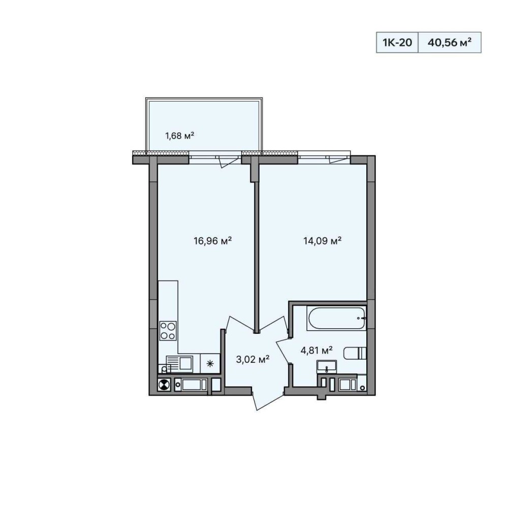 • Площа кухні 16.96 м2