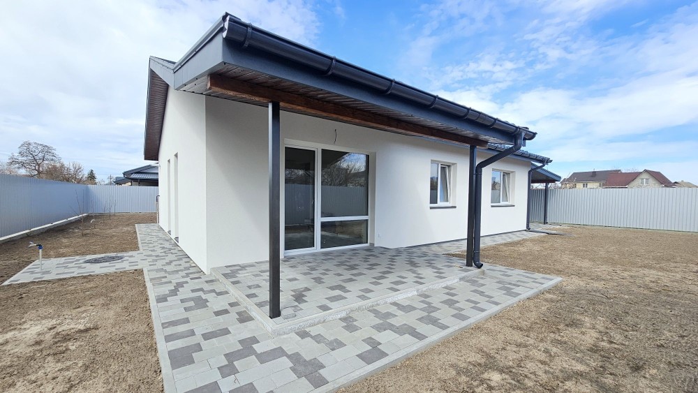 Двір виложений бруківкою є навіс для двох автомобілів.