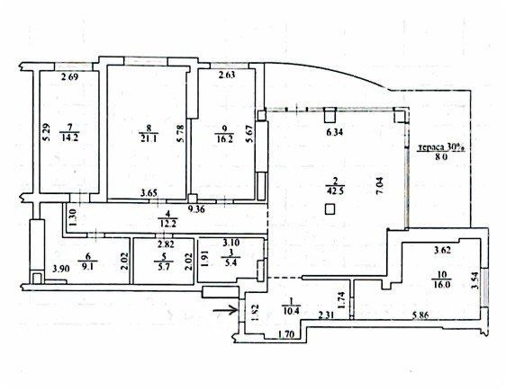 • Тераса — 8,0 м² (рахується 30%)