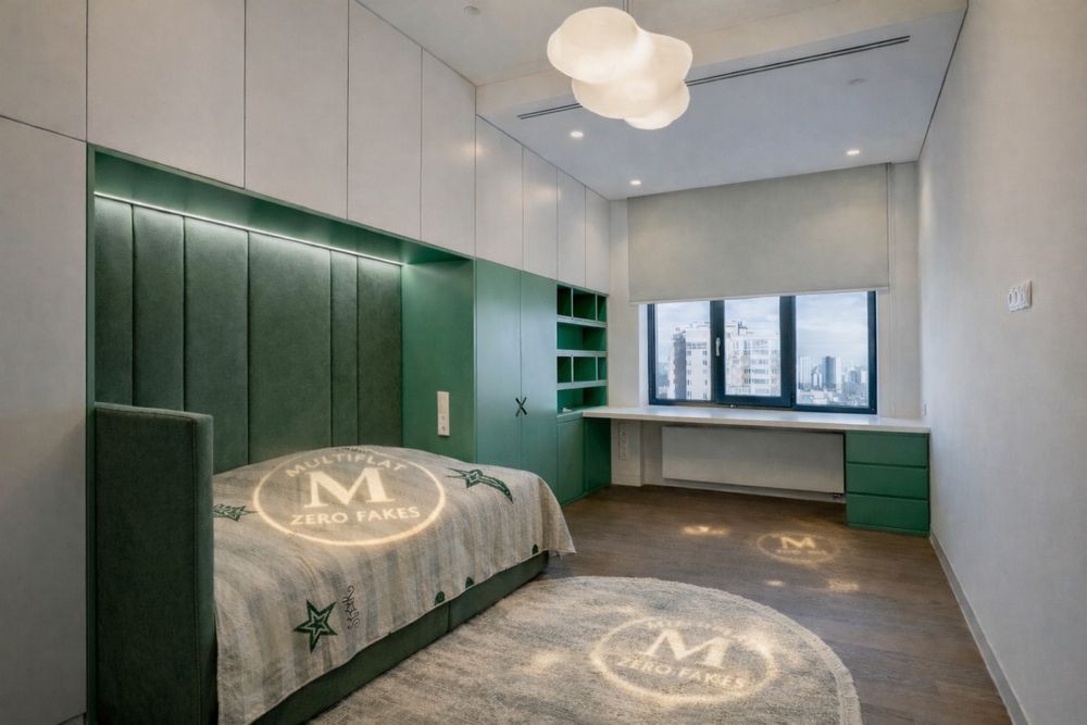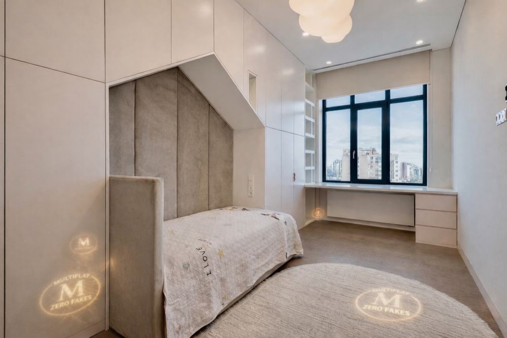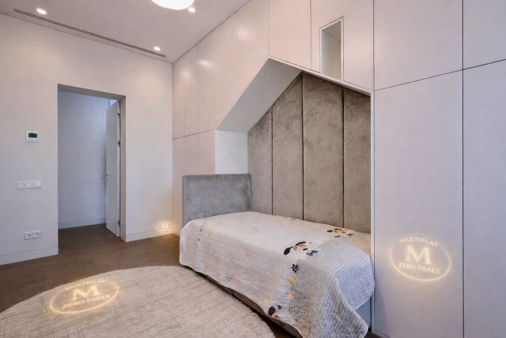 • Дві дитячі: інтегровані шафи, робочі місця, оздоблення текстилем, різноманітна підсвітка