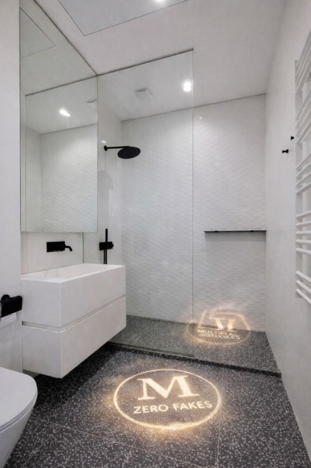 • Великоформатний керамограніт у санвузлах та пральній кімнаті.