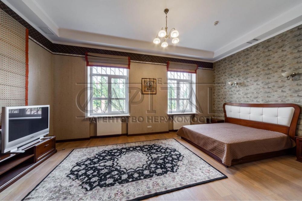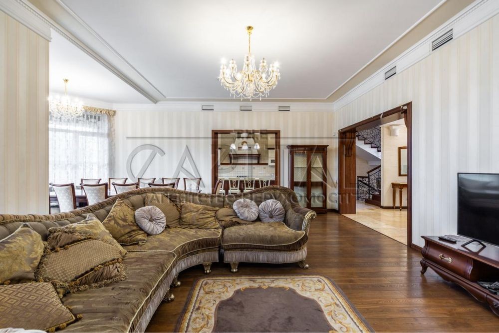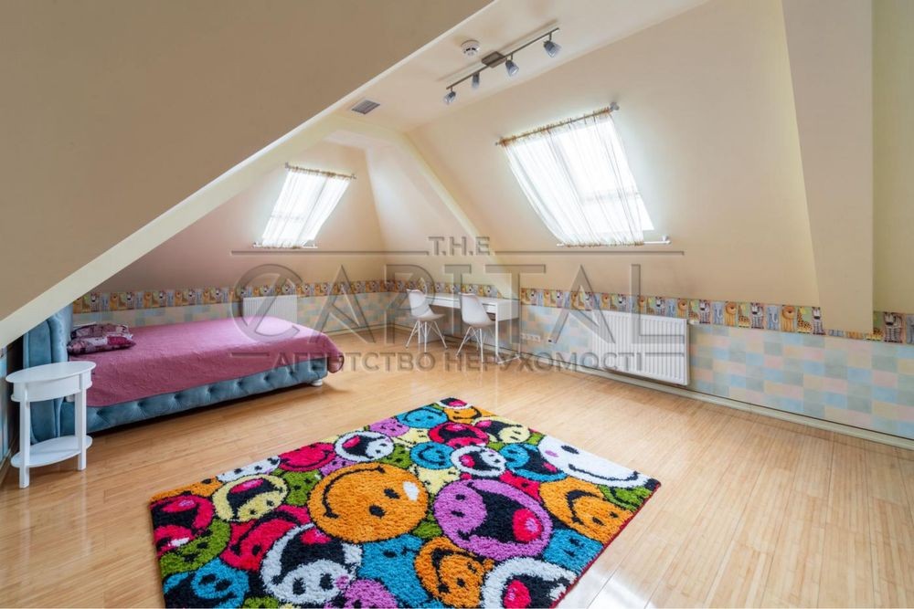 Будинок має 3 поверхи, загальна площа 872м2. 7 спальних (деякі облаштовані під дитячі кімнати), 8 санвузлів. Також у будинку є закритий басейн, сауна, великий кабінет-бібліотека, підвальне (цокольне приміщення) та окремий блок для проживання обслуговуючого персоналу. Закритий гараж для 2 машин є місце для 2-5 машин на вулиці.