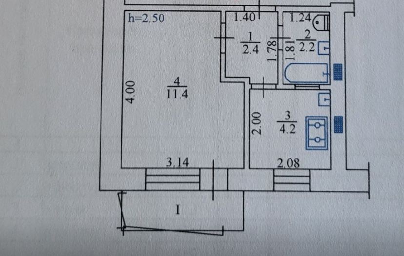 • Площа кухні 4.2 м2