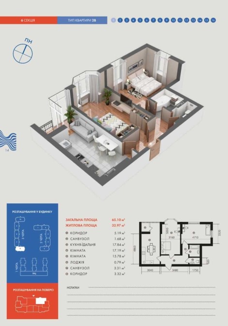 • Загальна площа 65.1 м2