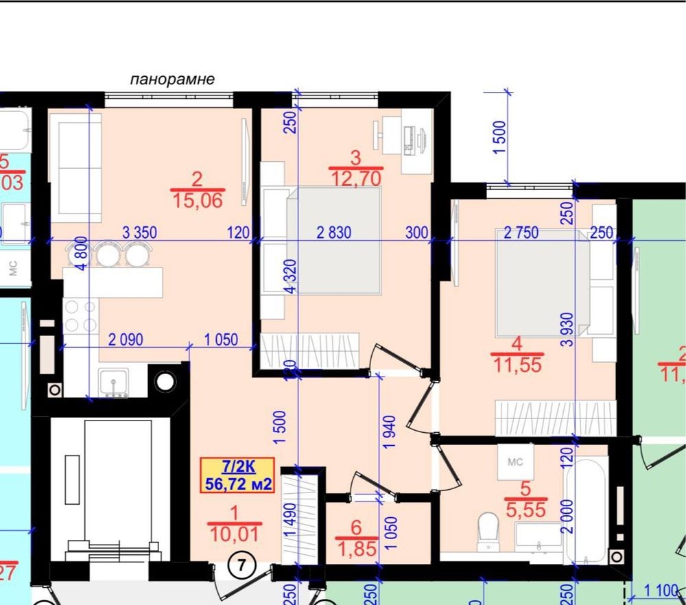 • Загальна площа 55 м2